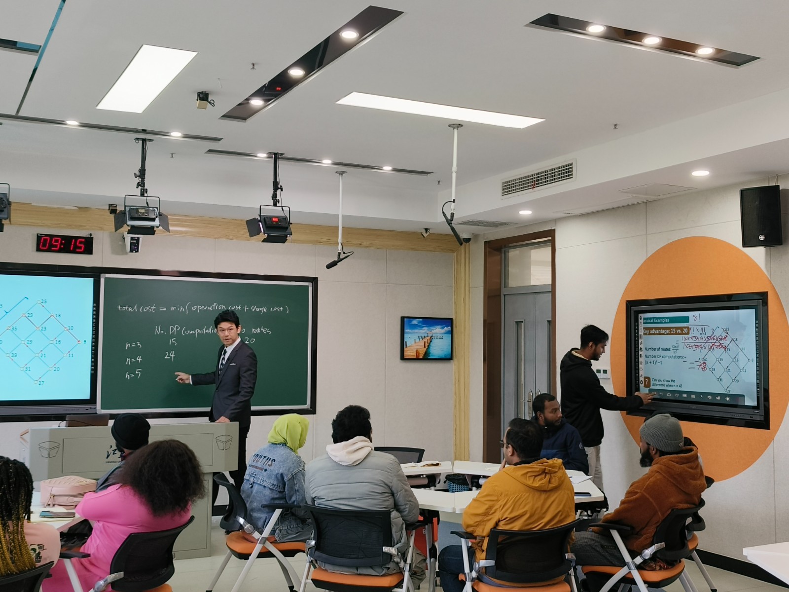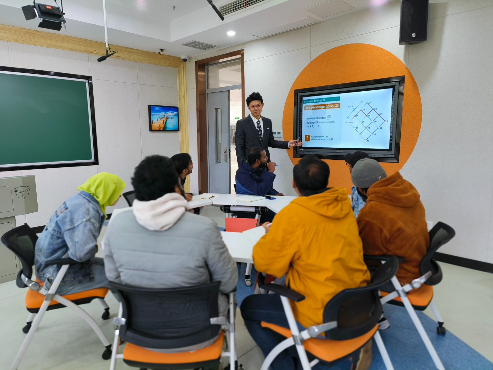 自9月份以来,我校海外教育学院就精心筹备本次比赛,努力做好服务保障工作,先后组织了校内评审推选与赛前专家辅导工作,邀请校内、外经验丰富的专家从教学设计、教学内容、教学方法与创新等方面对参赛教师进行辅导。两位参赛教师积极备赛,认真演练,最终在竞争激烈的决赛中,以主题鲜明的课程设计、新颖多样的教学手段、重点突出的黑板板书、气氛活跃的师生互动以及生动流畅的英文表达获得评审们的肯定,充分展现了我校留学生任课教师全英文授课的风采与能力。