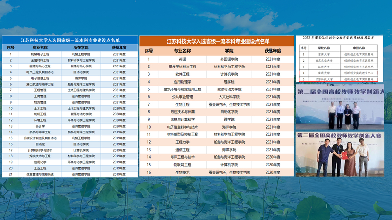 3个项目获推申报国家级教学成果奖;新增9个国家级一流本科专业建设点,并列省属高校第4位,5个专业通过认证(含通过国际认证2个),获批省产教融合型品牌专业建设点2个、培育点1个,省重点产业学院1个;获批国家级创新创业教育实践基地;《大学物理》教学团队获第二届全国高校教师教学创新大赛全国赛二等奖,入选省优秀基层教学组织2个。