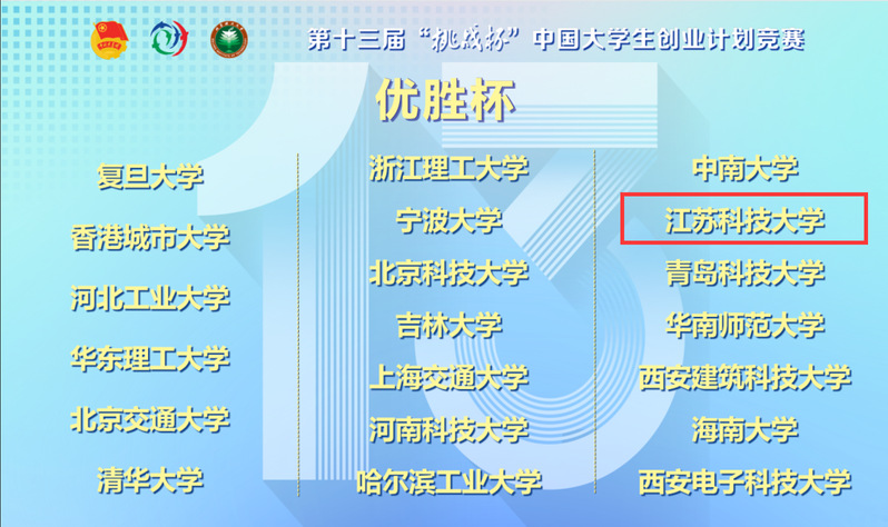 3月17日-19日,第十三届“挑战杯”中国大学生创业计划竞赛全国决赛在北京理工大学举办。 首次捧得“全国优胜杯”,1件作品获得全国金奖、2件作品获得全国银奖、2件作品获得全国铜奖,团体总分位列江苏省第3名,实现“挑战杯”创业计划竞赛新突破。