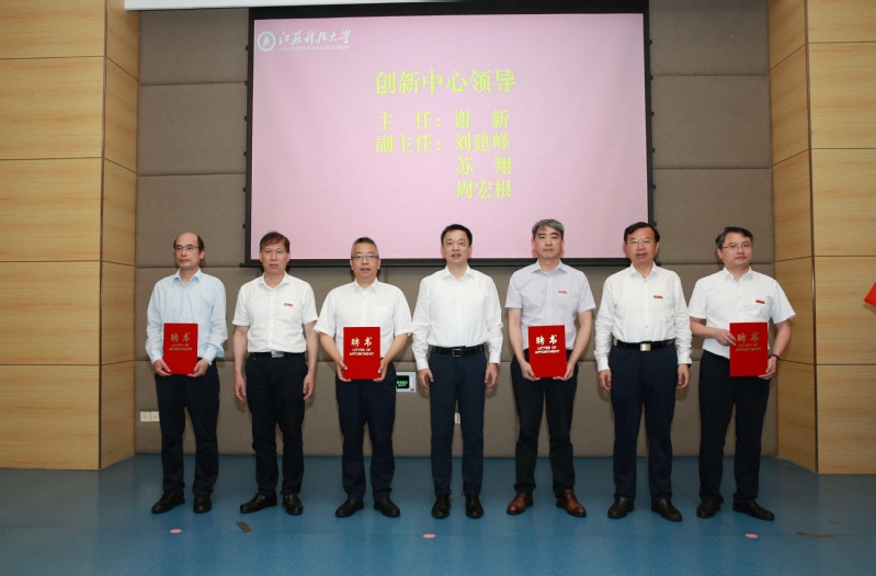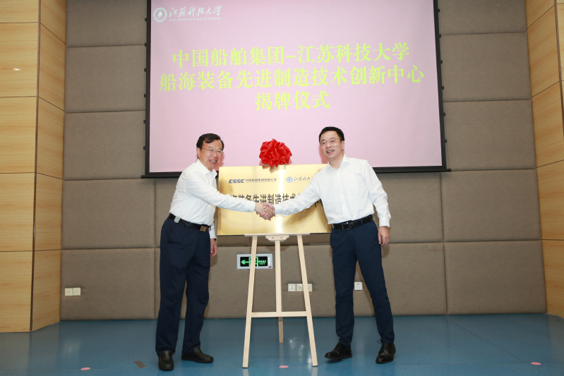 会上,中国船舶集团科技部副主任常文君宣读《关于成立“中国船舶集团—江科大船海装备先进制造技术创新中心”及其理事会的决定》,盛纪纲、周南平担任理事长;许淼、谢新、王加友、周宏根担任副理事长;中国船舶集团和 24位同志担任理事;谢新担任创新中心主任,刘建峰、苏翔、周宏根担任创新中心副主任。盛纪纲副总经理、葛世伦书记、周南平校长分别为副理事长、理事代表、创新中心领导颁发聘书。盛纪纲副总经理和周南平校长共同为“中国船舶集团—江科大船海装备先进制造技术创新中心”揭牌。