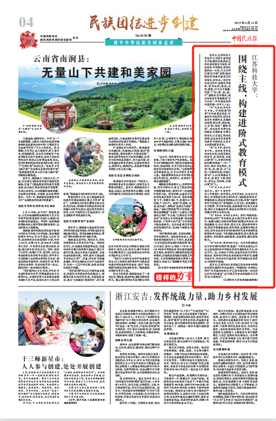 近年来, 获批江苏省铸牢中华民族共同体意识教育试点高校,“兴船报国·同舟同心同行”教育基地被命名为“江苏省高校统一战线同心教育实践基地”,红石榴工作室成功创建为江苏省“红石榴家园”。( 党委统战部供稿)