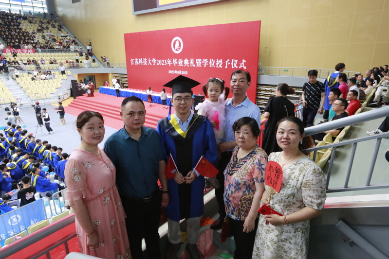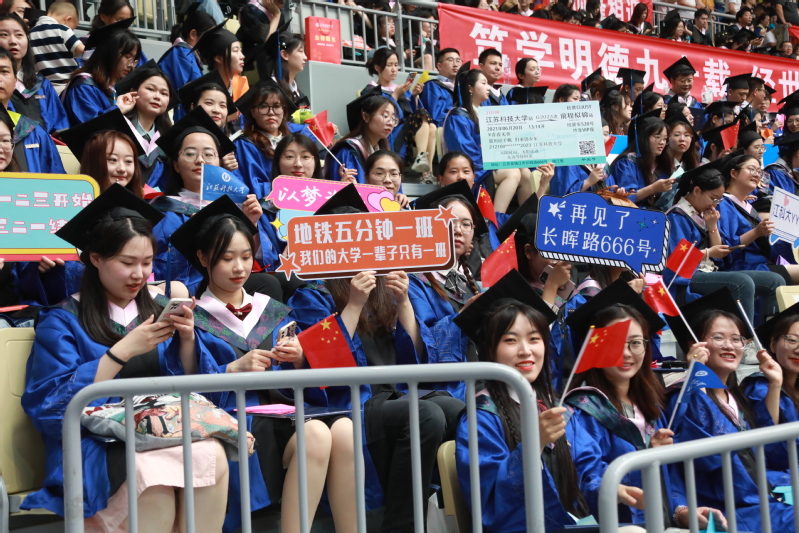 “今天以后,你们就要离开心中的‘浪浪山’,去各自的世界里做一个‘大人’了”,周南平细数诗意青春里可爱有趣的细节:“作为最后一批‘住客’,你们拥有着对悠然见南山的南校区、外号‘小牛村’的西校区的独家记忆;你们选修到了令人羡慕的潜水、浆板、皮划艇课程,划起了海韵湖第一年下水的端午节龙舟;你们吃到过江科大专属定制月饼、文创雪糕;你们用文理大楼的光学望远镜观测过中秋圆月、灿烂星河;你们看到了校园里天鹅宝宝的破壳而出;你们更见证了学校被遴选进入江苏高水平大学的行列.....”他希望这些母校留下的浪漫记忆,在毕业生们心中化为澎湃的爱意,帮助他们成长为活泼、善良、纯真的“大人”。