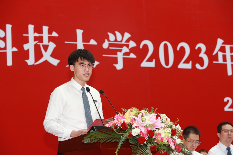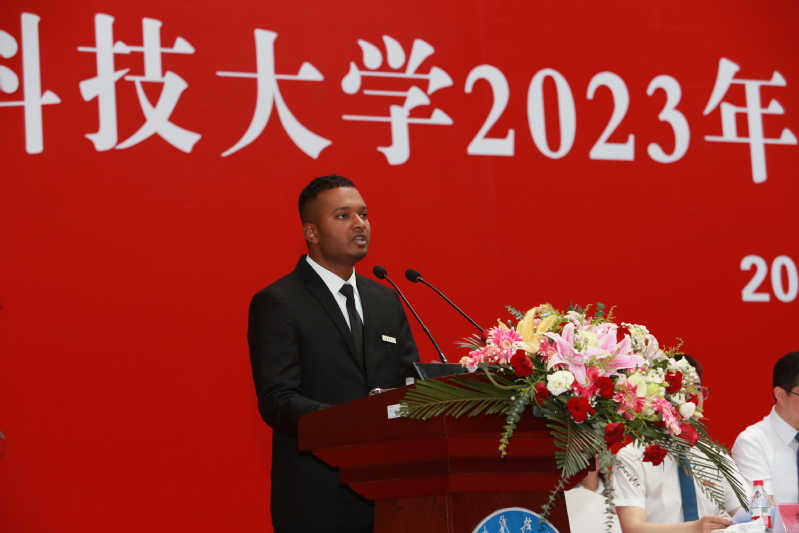 明朝即长路,惜取此时心。母校的一草一木、一砖一瓦,铸造着江科大人的风骨与精魂,更是学子们奋进前行的动力源泉。研究生代表、经济管理学院工业工程与管理专业2023届研究生孙嘉俊深情回顾了自己在江科大求学的付出与收获;来自孟加拉国的2023届机械设计制造及其自动化专业本科生山姆代表海外留学生表达了对母校的不舍与感谢;机械工程学院2023届工业设计专业本科毕业生赵薇以“做有理想、敢担当、能吃苦、肯奋斗的新时代青年”与全体毕业生共勉。