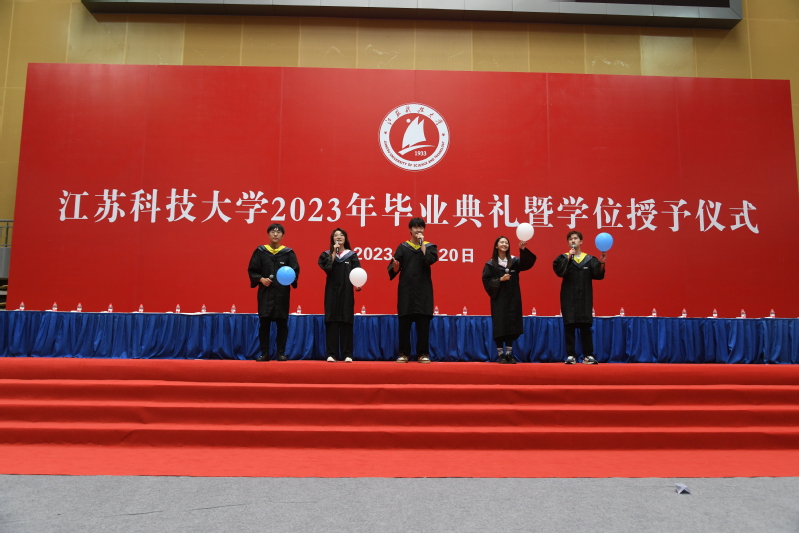骊歌声起,少年即将踏歌远行。“乘长风,破巨浪,扬云帆,跨海洋……”毕业生们用饱含深情的歌声,再次展示出江科大人自强不息的精神底色和矢志不渝的家国情怀。伴随着悠扬奏唱的 校歌,数千只蓝白色相间的气球如海浪般纷纷扬扬地落下,毕业典礼告一段落。在中场休息时,大学生艺术团的同学们为大家演唱了动听的歌曲,悠扬歌声里,是藏不住的款款深情与依依留恋。