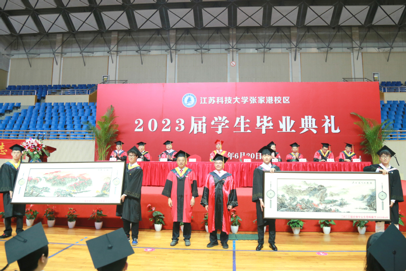 校党委书记葛世伦,校长周南平,学校1995届校友、中船九江海洋装备(集团)有限公司党委书记、董事长程柏林,校领导景旭文、汤建、王加友、郑培钢、谈镇、任南、胡爱祥,校党委常委周春燕、刘新波, 学位委员会委员、相关职能部门领导、2023届全体毕业生、辅导员、班主任,导师和教职工代表,家长代表、校友代表,热情相聚,深情话别。校党委常委、副校长潘锦全,组织部部长李恒川在张家港校区分会场出席典礼,张家港校区相关部门、部分教师、家长代表、毕业生580余人参加了现场典礼。