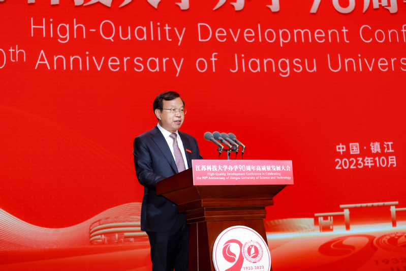 千年古城,芳华长驻;九秩擢英,铸魂育良。10月26日, 迎来办学90周年。江科大师生员工、海内外校友、社会各界人士相聚一堂,共话辉煌、共谋大业,见证学校发展征程历史性时刻。上午9点30分, 庆祝办学90周年高质量发展大会在长山校区船苑剧场隆重举行,校党委书记周南平主持大会,校长嵇春艳作高质量发展报告。12万多人次收看大会直播盛况。
