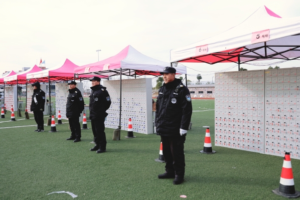 招生办在学校党委领导下,与相关部门通力合作,考试期间考点实行封闭区入口和考场入口两次人工安检和一次智能安检门安检,同时进行人脸识别检查,确保考生精准快速入场。考场外设置物品置物架,方便考生存放个人物品。学校各部门协同配合,统筹规划、协调实施各项考务组织工作,考务人员提前到岗,监考人员严谨认真,全力实现考试安全、有序进行。