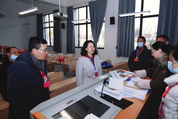 考试前,校长嵇春艳到现场检查指导工作,详细了解考生应考情况,保密管理措施、安全保障措施等落实情况,为考务人员和考生送去亲切关怀。本次考试由副校长施伟东担任主考,研究生院常务副院长袁爱华、安全保卫处处长蒋宏志、信息化办建设与管理办公室主任韩斌任副主考。