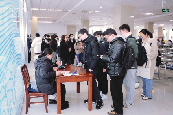 考点考务、监考人员早到位、早上岗,力争考生早安检、早进门,减少考生入场排队时长。考点考试大楼内提供热水,考生可根据需要自行接取,同时设置室内休息区,为考生午休等提供便利服务,保障考生健康暖心研考。