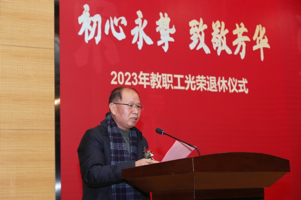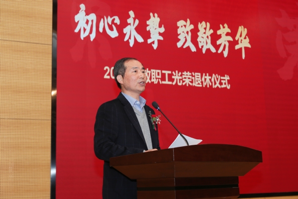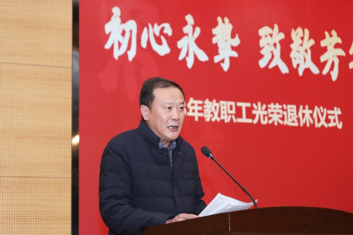 党委书记周南平在致辞中诚挚祝贺各位老师光荣退休,感谢大家对学校教育事业的倾情奉献。他指出,九秩薪火传承的江科大每一项成就、每一步发展,都凝聚着一代又一代教职工的心血与智慧。学校会感恩、会铭记为江科大奋斗过的每一位教职员工。希望荣休教职工在人才培养、 、科学研究、提携和帮助青年教师等方面发挥余热、贡献力量。学校会继续关心关爱荣休教职工,在全校上下大力营造尊重老教师、学习老教师、关爱老教师的浓厚氛围,积极为荣休教工办实事、做好事、解难事,为荣休教职工贡献智慧、贡献力量搭建平台。