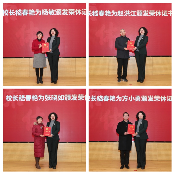 岁月染芳华,桃李竞芬芳。1月11日下午, 2023年度荣休教职工相聚长山校区图书馆105报告厅举行荣休仪式。校党委书记周南平、校长嵇春艳、荣休教职工出席。党委副书记汤建主持仪式。