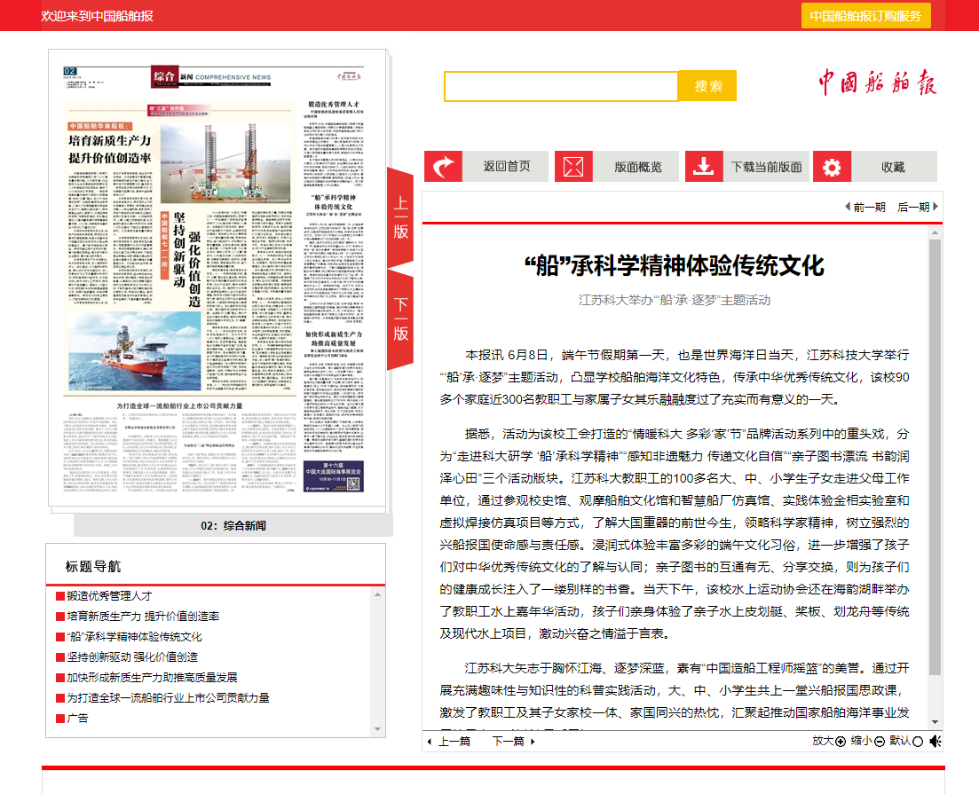 本报讯 6月8日,端午节假期第一天,也是世界海洋日当天, 举行“‘船’承·逐梦”主题活动,凸显学校船舶海洋文化特色,传承中华优秀传统文化,该校90多个家庭近300名教职工与家属子女其乐融融度过了充实而有意义的一天。