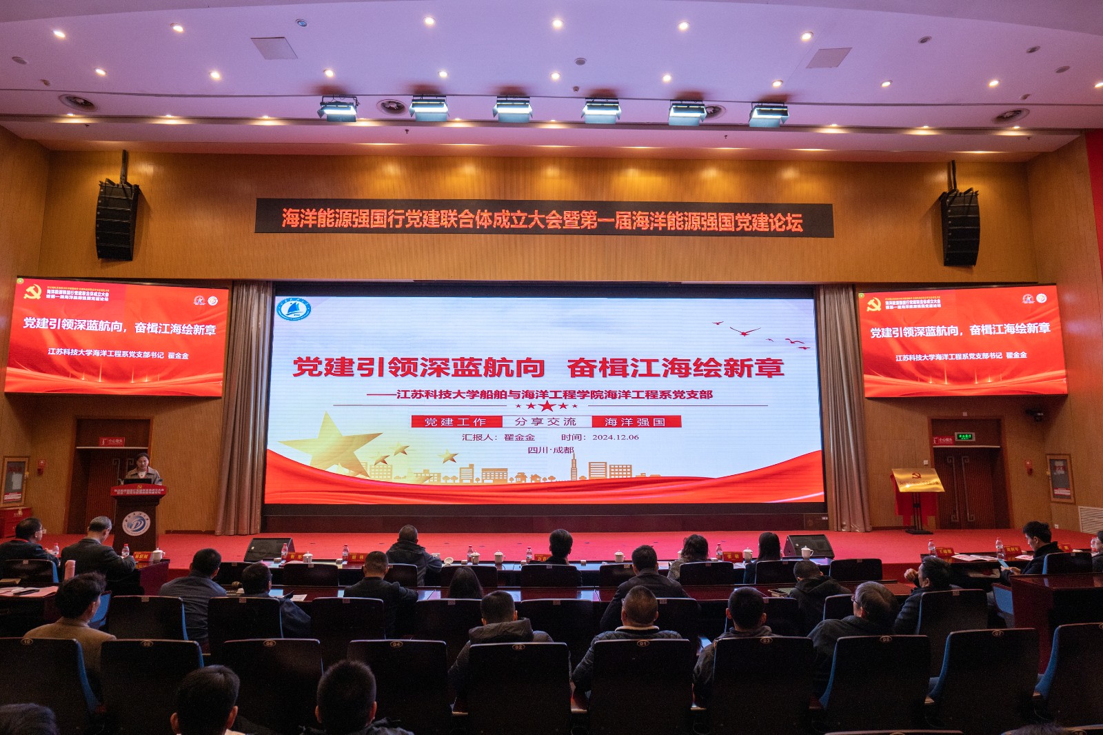 牢记嘱托勇担海洋能源强国使命,党建联建凝聚逐梦深蓝智慧力量。12月6日,由中国海洋石油集团有限公司、中共四川省委组织部、中共四川省委教育工委、四川省教育厅联合指导的“海洋能源强国行党建联合体成立大会暨第一届海洋能源强国党建论坛”在西南石油大学举行。中国海洋石油集团有限公司党建工作部综合处副处长万青霖,中共四川省委教育工委、四川省教育厅党建与干部人才处处长王挚,西南石油大学党委书记张烈辉出席会议并讲话。来自全国与相关省市15所高校“强国行”专项行动团队负责人、高校“双带头人”教师党支部书记工作室负责人、党建工作样板支部书记、支部委员代表等100余人参加了此次活动。 被推选为第一届副理事长单位,船舶与海洋工程学院海洋工程系党支部受邀参加成立大会并作报告。