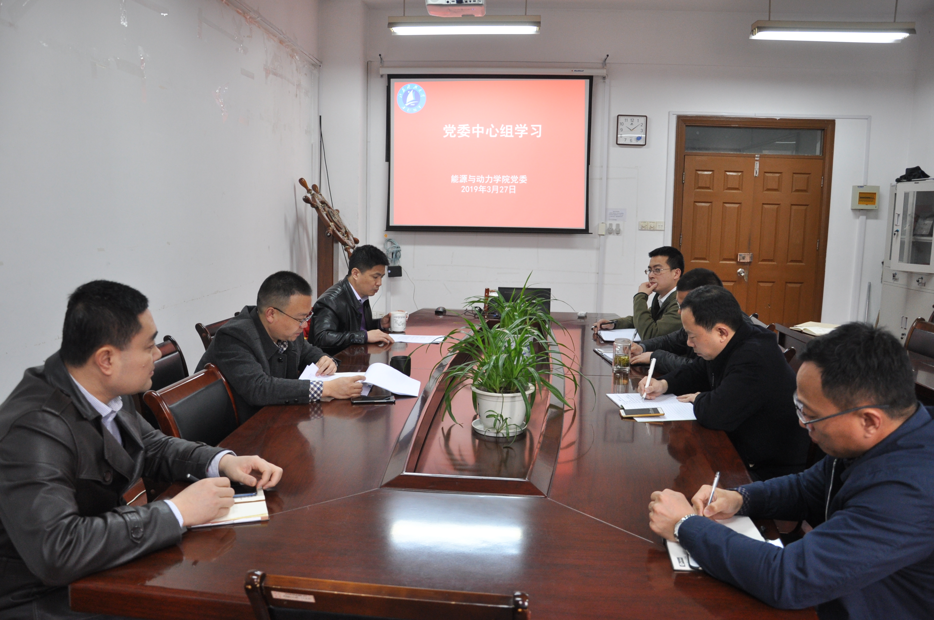 3月27日上午,能动学院党委中心组开展集中学习,学习习近平总书记在庆祝改革开放40周年大会上的讲话精神及两会精神,同时围绕“新形势下如何推动学院重点工作、谋划学院高质量发展”展开专题研讨。学院党委中心组成员参加集中学习,杨美成书记主持会议。