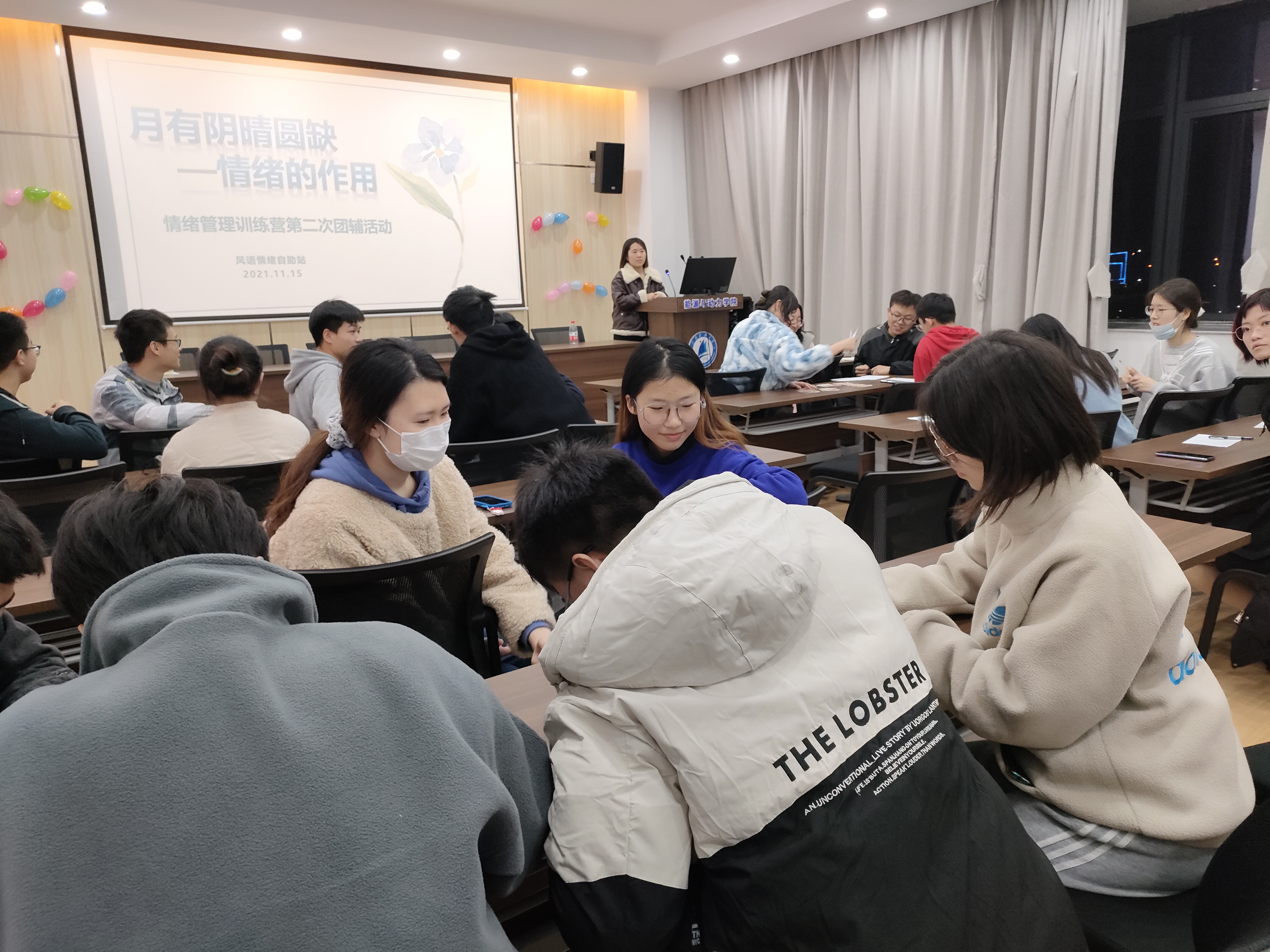 情绪贯穿于我们的学习与生活,并产生着不同的影响。为了帮助同学们检省自己的情绪,了解自己的主导情绪,引导大家体验快乐情绪,11月15日,由能源与动力学院和电子信息学院合办的“风语情绪自助站”举办了情绪管理训练营第二次团辅活动——“月有阴晴圆缺——情绪的作用”。