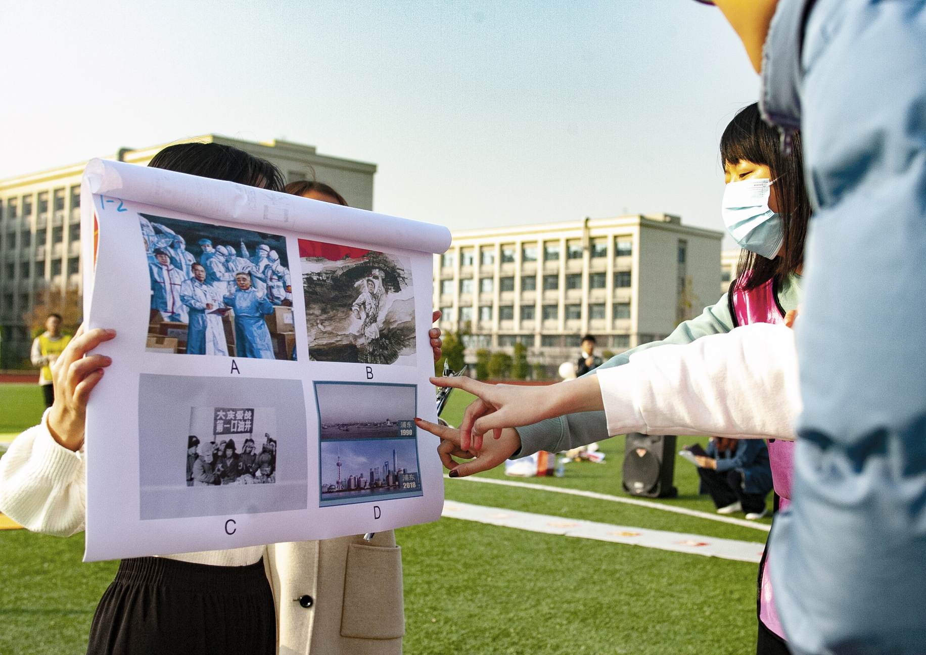 活动中,师生联合组成“全心全意”“实事求是”“艰苦奋斗”“与时俱进”四个小队,通过掷骰子、答问题、做游戏、走方格的形式,团结合作,你追我赶,历经“新民主主义革命征程”“社会主义革命和建设时期征程”“改革开放征程”以及“新时代复兴征程”四个阶段,最终到达游戏的终点。经过激烈的角逐,“与时俱进”队获得了冠军。
