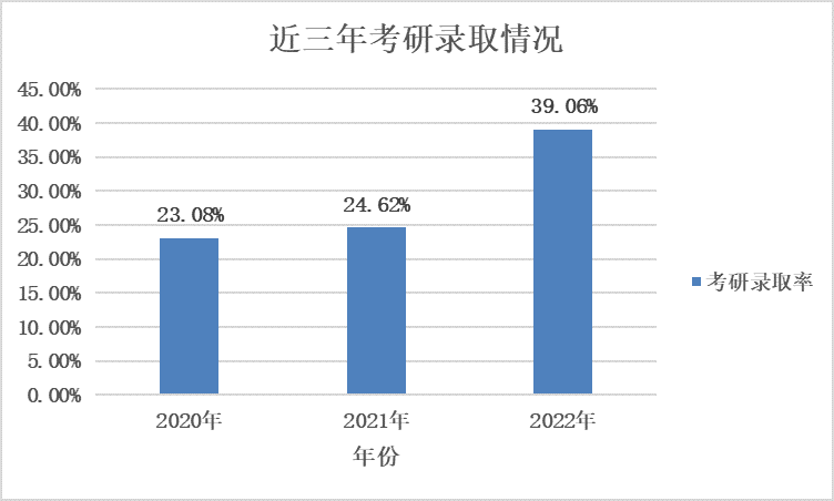我院各项考研工作扎实推进,近3年考研录取率持续上升。2022年考研工作更是取得优异成绩,相比于2021年,报名率提高20.72%,达线率提高16.89%,录取率提高14.44%。