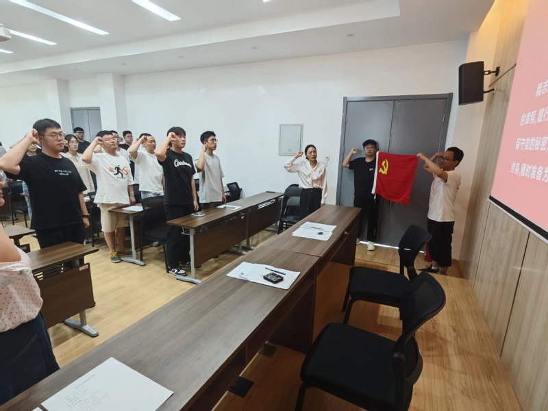 会议初始,由领誓人戴楚怡带领全体毕业生党员面向鲜红的党旗重温入党誓词,在铿锵有力的誓言声中,全体毕业生党员进一步坚定入党初心和为共产主义事业奋斗终身的决心。