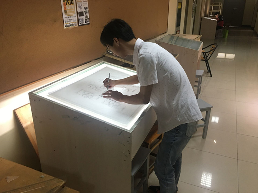 随后的几天里,小分队的同学们在对新校区建筑设计进行可行性分析的基础上,分工开展绘图工作,绘图包括总平面图、立面图、剖面图三个部分。在老师指导下与自行查阅资料后,调研小分队的成员们逐步地学习初步设计,熟悉技术要求,潜心绘制工程图,最终以精确的电脑制图将自己对新校区的建筑布局以及装修设计等创新性想法呈现出来。