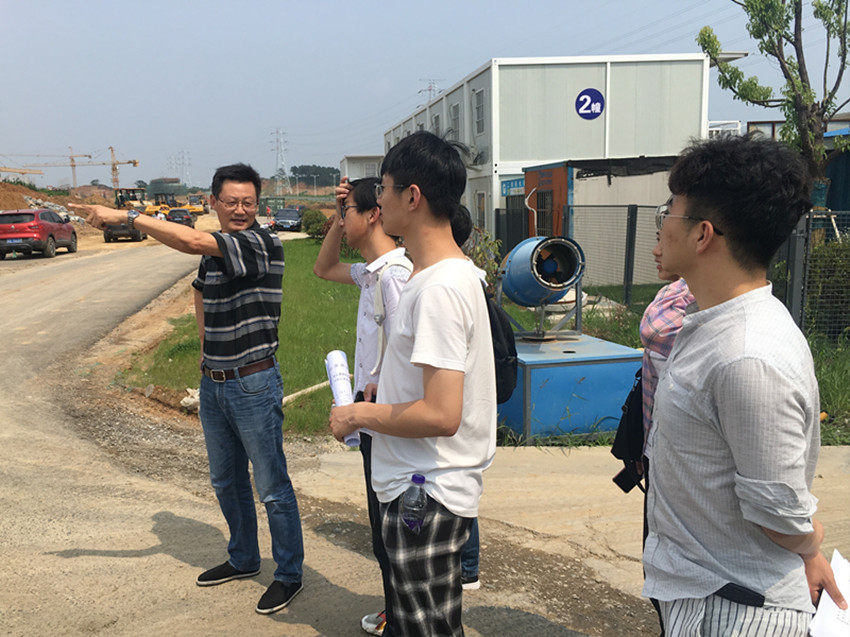 7月3日上午,调研小分队来到新校区进行实地学习,新校区建设指挥部的王树林老师首先向大家介绍了新校区建筑物的总体分布,提供了调研方向。同学们在认真听取讲解之后进行了积极讨论,一路参观了新校区的学生宿舍、学生食堂、公共教学楼、图文资讯中心、文理大楼等。大家一边观察建筑的内部布局、房间内部墙体、圈梁的设置,一边提出自己的见解,如工程管理专业的蒋芸琪同学发表了自己对于阳台设计的创意主张,土木工程专业的吕延栋同学提出了关于内部设施摆放的建议,其他同学纷纷表示赞同,又补充了一些新奇的想法,并准备通过CAD绘图的方式把这些点子都展示出来。对于学校食堂,同学们不仅见识到了其规模之大,还学习了顶楼较完善的防渗水措施,丰富了专业知识。最后,小分队派顾金森同学作代表将关于内部结构创新布置的想法阐述给王树林老师听,得到了王老师的指导和修正,并获得了认可。