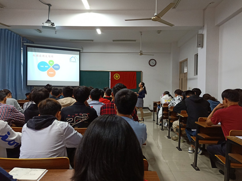 主题教育中,郑旭老师首先以新中国成立70周年引出青年大学生对“中国梦”、“科大梦”、“土建梦”的思考与追求,提醒大家理想信念的追求需要练就真本领,作为土建学子不仅要学习专业知识和技能,还要注重培养人文素质,加强文字表达能力,提升写作素养,才能成长为高素质创新型人才。接着,郑旭老师从校园新闻写作和应用文写作两方面进行详细讲解,她介绍了新闻稿的基本组成结构和不同类别新闻稿的写作要求,并为同学们讲解了常用的校园应用文写作格式及注意事项,强调在写作中要用语准确、逻辑严谨、结构完整。