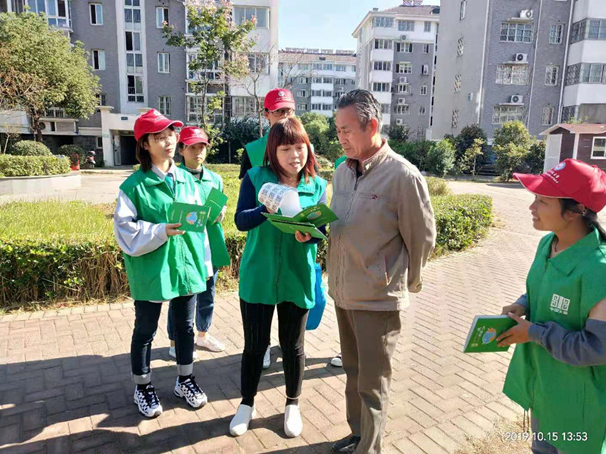 社区治理是做好垃圾分类的最大突破口。在富润华庭社区,同学们聚集在垃圾分类宣传点,了解各种分类知识,社区的工作人员热情地接待了志愿者们,为大家阐明了垃圾分类的重要性,并详细介绍了社区在垃圾分类方面做出的各种措施,如积分换商品等方式等。在工作人员指导下,志愿者们尝试向居民宣传垃圾分类的小知识,并上门走访社区居民,听取意见和建议。