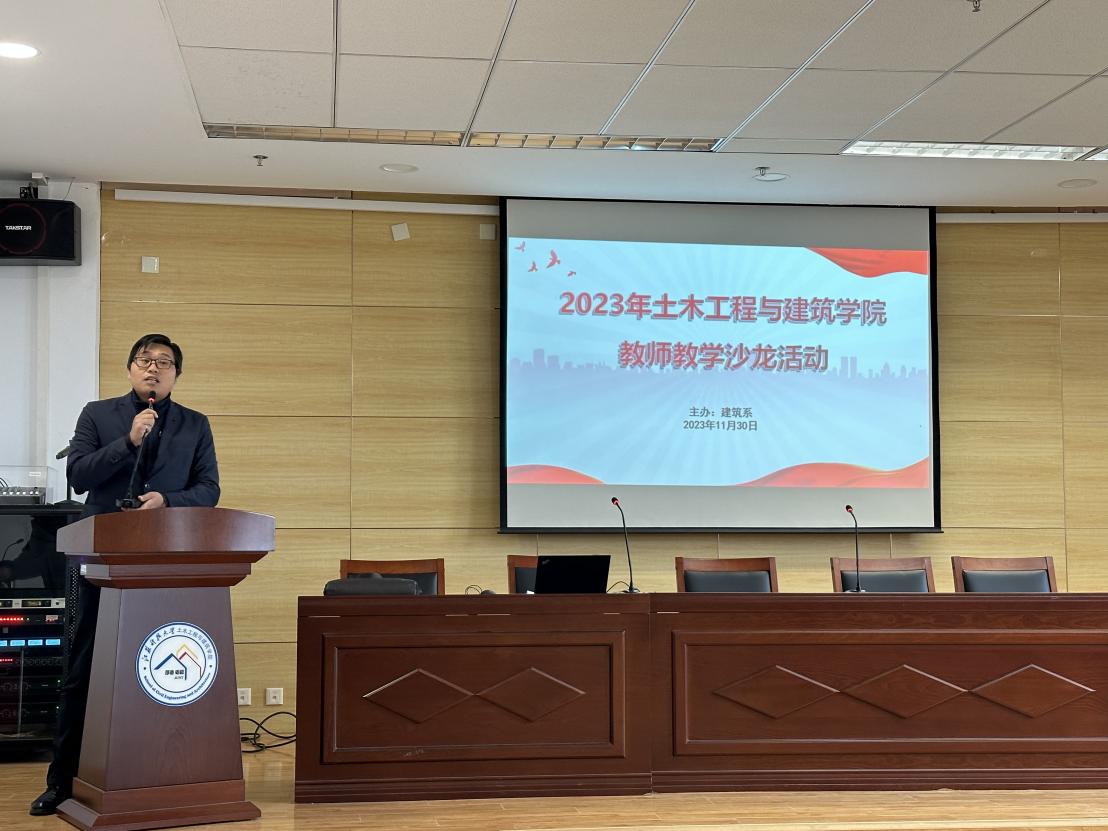 为加强新时代教师队伍建设,进一步提升教师教学能力,提高教学质量,营造教学文化氛围,搭建教师教学交流平台,土木工程与建筑学院建筑系于2023年11月30日下午举办了以“教师教学能力提升”为主题的教学沙龙活动。