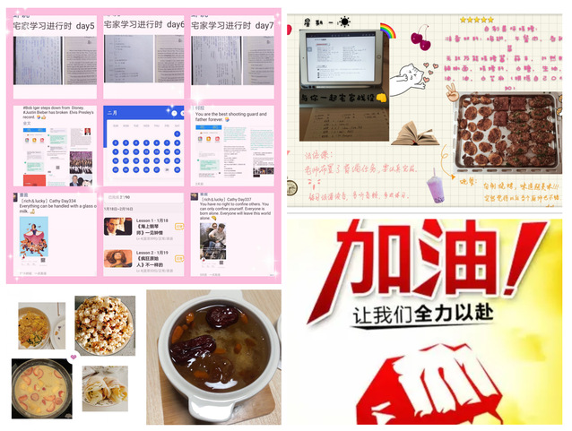 学院号召广大学子开展“与你一起,宅家战役”每日打卡活动。打卡内容涵盖读书学习、兴趣特长、志愿服务、家人互动和体育锻炼等各个方面,以此增进同学们之间、与家人间的交流互动,帮助缓解负面焦虑心理,度过丰富而充实的假期时光。在打卡活动开展期间,同学们积极响应,踊跃参加,纷纷通过QQ空间、群分享、微博、今日头条、手绘手账等多种形式记录、分享假期学习生活的点点滴滴,记录每天“宅家学习进行时”的学习内容与心得,分享今日新学的菜式与锻炼方法,展现出积极健康向上的学习生活状态。