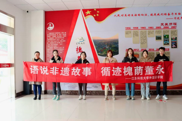 英语协会组织协会成员前往镇江市丹徒区谷阳镇槐荫村,开展《董永遇仙记》寻访、槐荫村古迹溯源、七仙池小考、拍摄微视频、非遗文化主题英语角等一系列实践活动,接受非遗文化熏陶。在每周英语角活动中,协会成员围绕“讲好非遗故事、传播好非遗文化”主题开展交流讨论,在语言交流、思维碰撞中,让更多大学生了解非遗、热爱非遗。