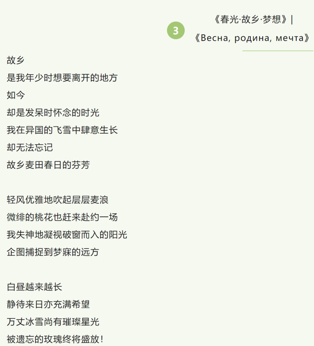 红帆俄语社在长山校区举办“春风花草香,青春正当时”俄语诗会活动。同学们录制中俄双语诗词,以诗歌展现美,以俄语点缀春天。在俄罗斯留学交流的2020级学生叶苏缘展示原创诗歌《春光·故乡·梦想》。