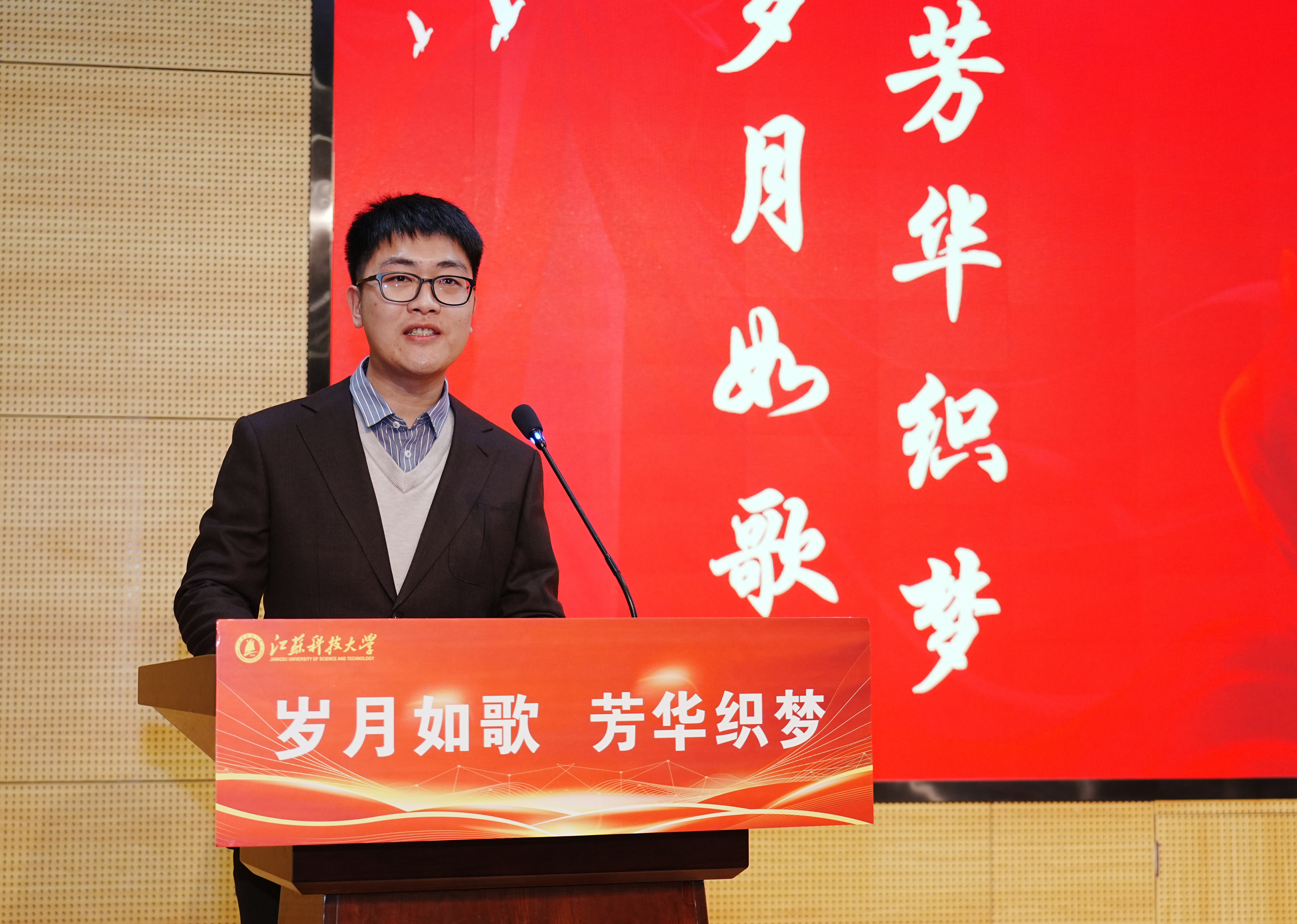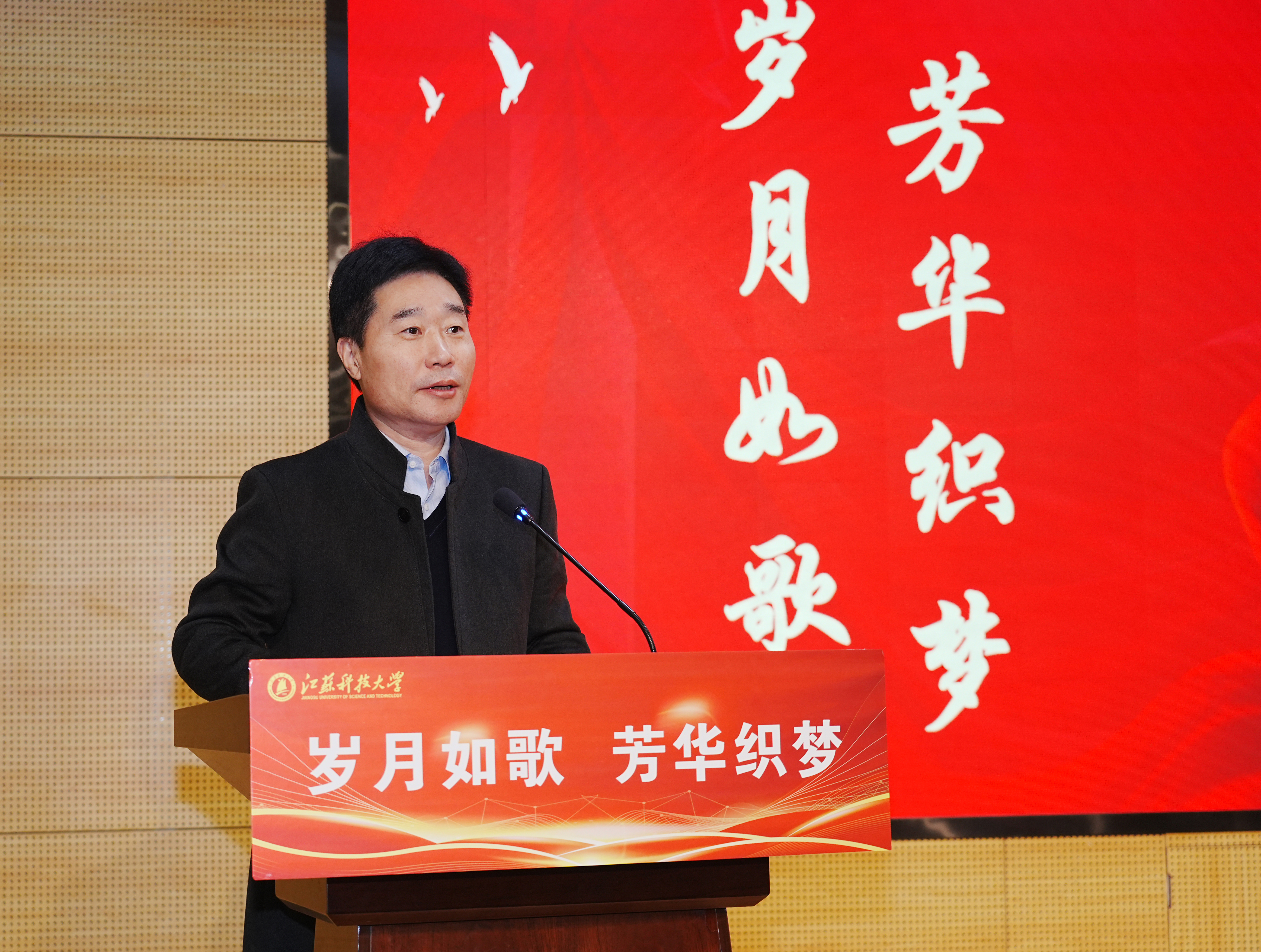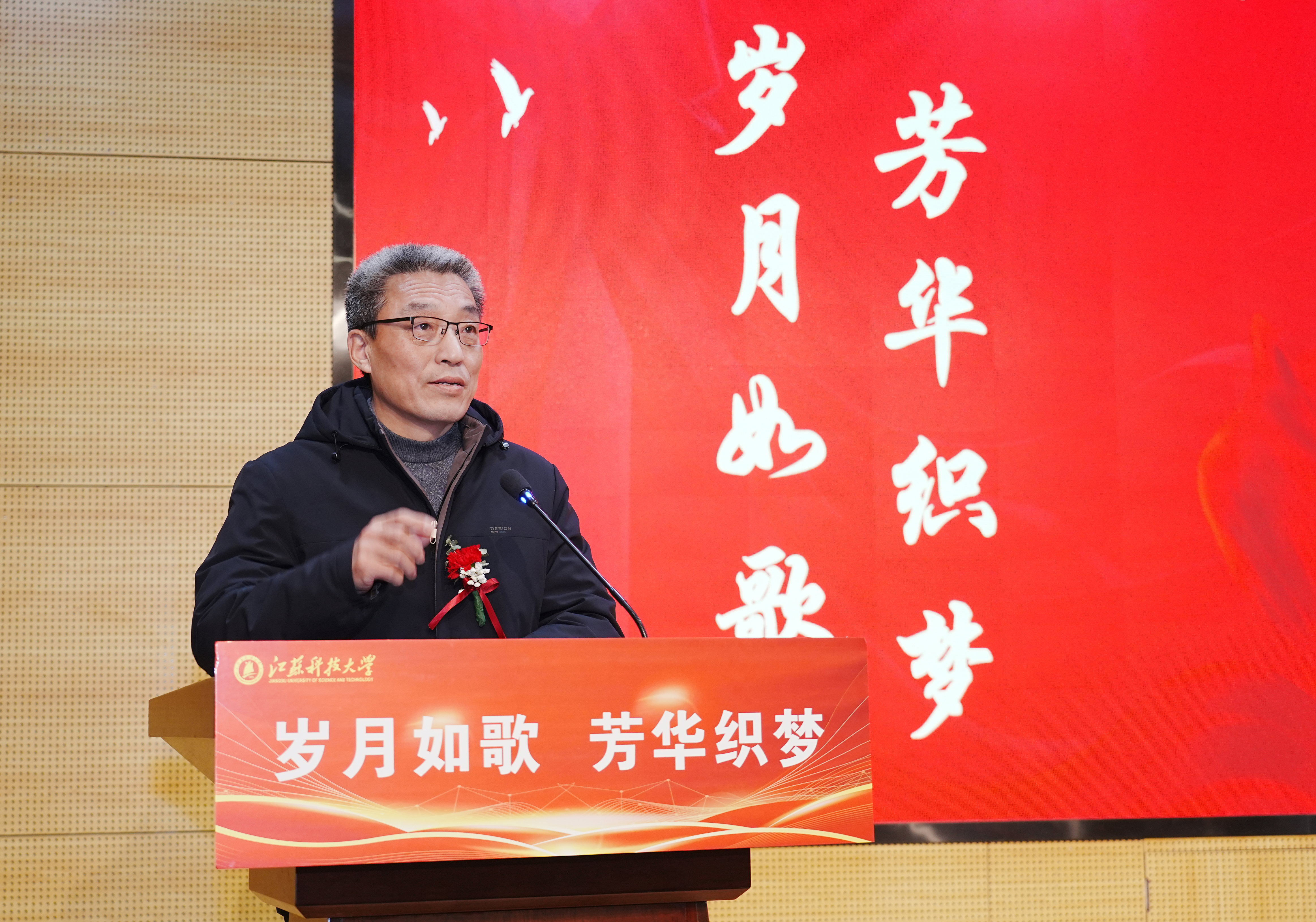 荣休教职工代表唐玉斌教授分享荣休感言,他表示,“在江科大工作二十余载,参与和见证了学校高质量发展过程,我感到无比骄傲和自豪。希望大家在学校党委的正确领导下撸起袖子加油干,创造新的辉煌。”