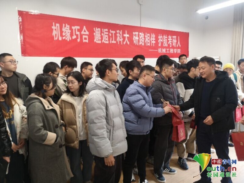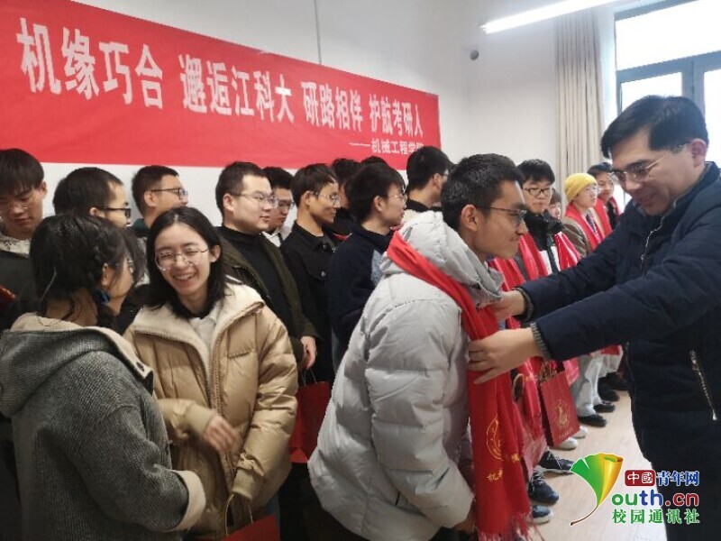 为了鼓励考研同学积极迎考,舒缓备考压力,增强考研信心,11月25日,在这寒风凛冽的严冬, 机械工程学院开展“机缘巧合 邂逅江科大 研路相伴 护航考研人”考研送温暖活动。机械工程学院党委书记仲崇光、院党委副书记翟纯纯、院团委书记谭海波、毕业班辅导员及部分考研学生代表参加了此次活动。