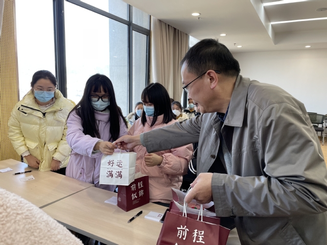 冬日有暖阳,研途有温暖。活动最后,领导老师为同学们送上精心准备的慰问品,并集合合影留念,同声为考研学子加油祝福。