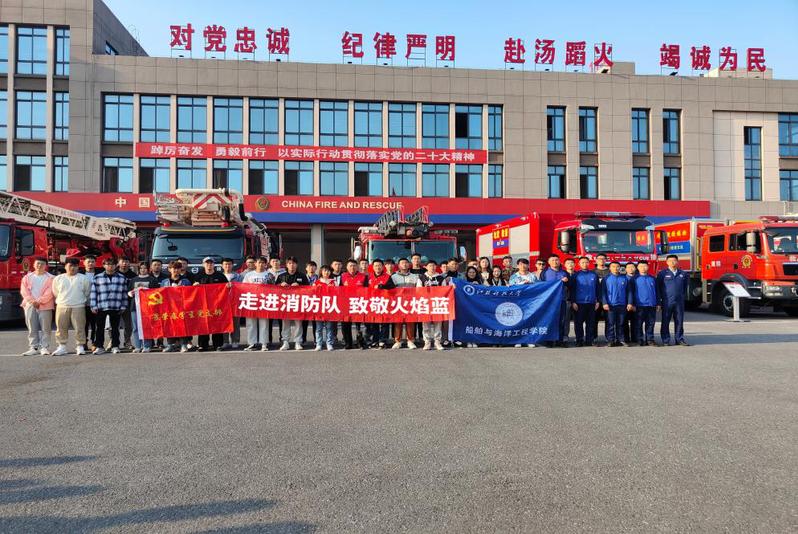 为进一步学习党的二十大精神,贯彻总体国家安全观,增强大学生消防安全意识,增强自防自救能力,在中国消防安全日来临之际,船海学院联合七里社区新时代文明实践站走进镇江市消防救援支队南徐大道特勤站开展“走进消防队 致敬火焰蓝”主题活动,活动包括参观消防器材、体验消防生活、学习消防知识和体悟消防精神。