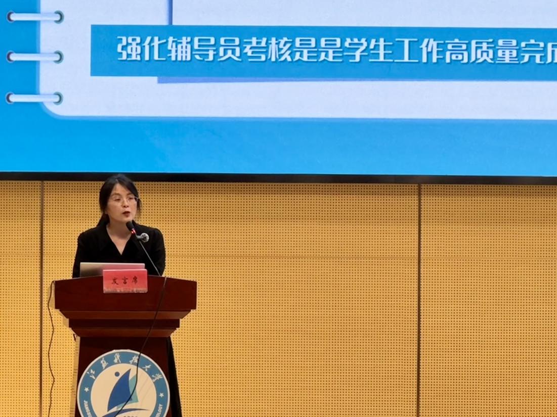 学生处副处长杨亚洲对辅导员工作考核细则及辅导员管理系统的开发进展作了介绍。她表示,辅导员工作考核,不仅是为了守底线、拉上限,更是辅导员工作评价的标尺,面对层出不穷的新问题需要不断完善制度以强化激励导向作用。
