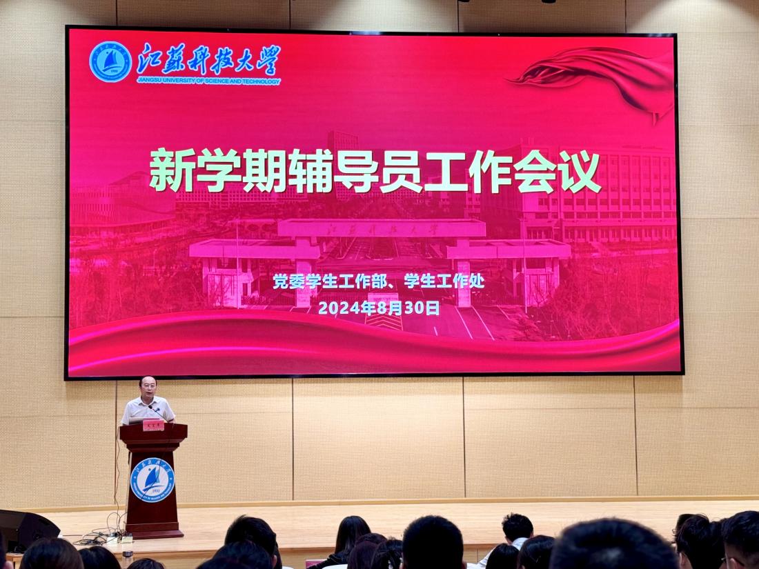 8月30日下午,我校在长山校区行政楼100号报告厅召开新学期辅导员工作会议。党委常委、副校长胡爱祥出席会议并讲话,学生处、研工部、团委相关领导,各学院分管学生工作领导以及全体辅导员参加会议。会议由学生处处长朱金主持。