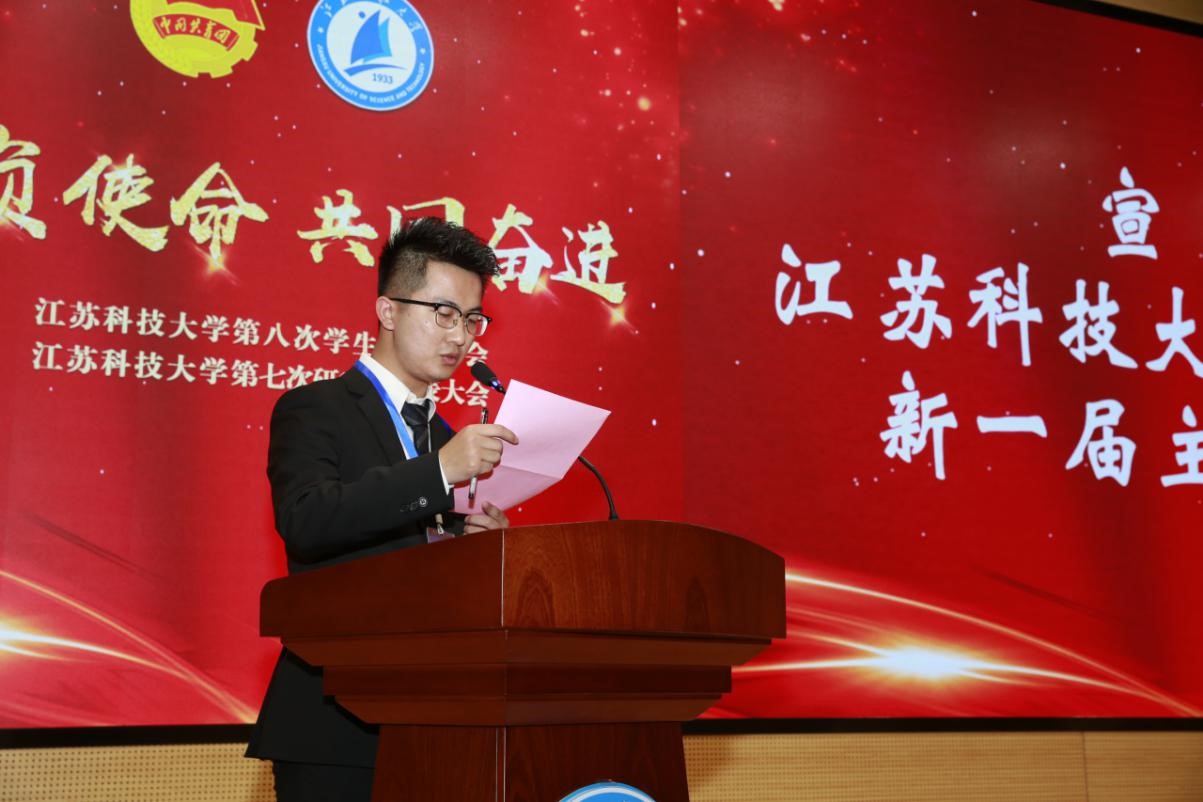朱宇琛同学作学生会工作报告。他表示要熔铸“船魂”精神,以学校方针政策为指引,提高学生组织的吸引力和凝聚力,把握机遇,深化学生组织改革。