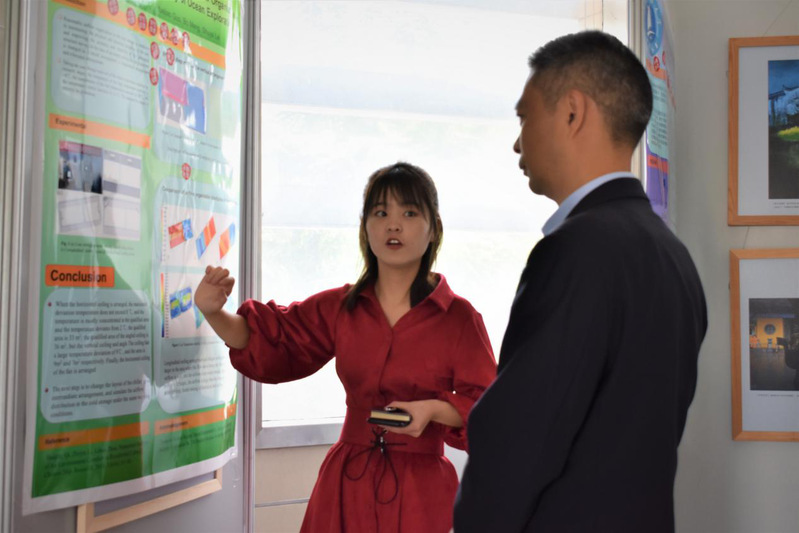 本次活动共展出49份海报,参展的海报有对螺旋桨在水中流场内的压力分布模拟的研究、非平面波传播对单腔室共振消音器传递损失的影响的研究、新型燃料电池和储氢材料的研究等,且大多墙报采用清晰的图表简洁展示了其创新性的学术成果。活动期间,现场准备了水果和饮料,前来参观的学生热情高涨,积极与海报作者交流自己的想法和疑问。各专业老师们也在现场与同学们分享自己的看法和建议,参展的研究生们更是积极与老师沟通,充分地展现了他们的学术表达和交流的能力。