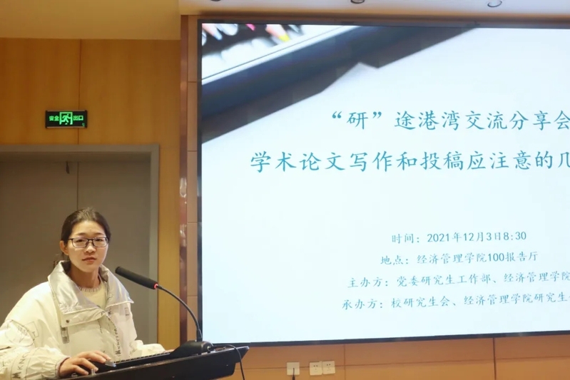 随后,经济管理学院两位“2021年硕士研究生国家奖学金”获得者2019级管理科学与工程曾少羽和陈慧珍分别围绕“论文写作、期刊选择和论文投稿”,“看什么论文、如何看论文以及如何写论文”等方面分享学习方法,给学弟学妹们分享学习经验,还给大家的研究生生活和未来规划提出了宝贵的建议。