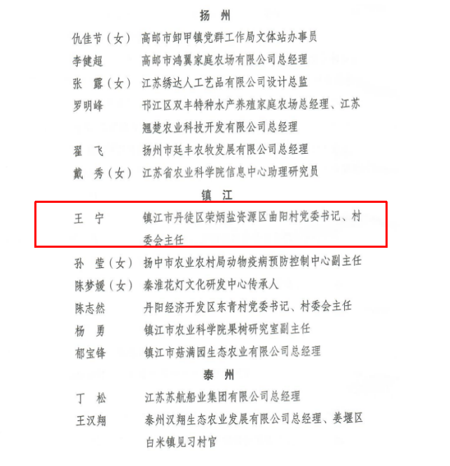 校友王宁荣获首届“江苏省乡村振兴青年先锋”