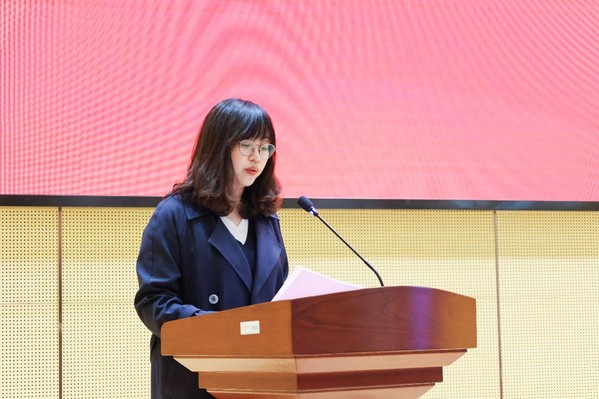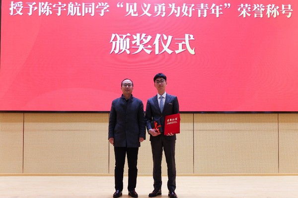 党委研究生工作部部长徐剑宣读《关于授予陈宇航“见义勇为好青年”荣誉称号的决定》。