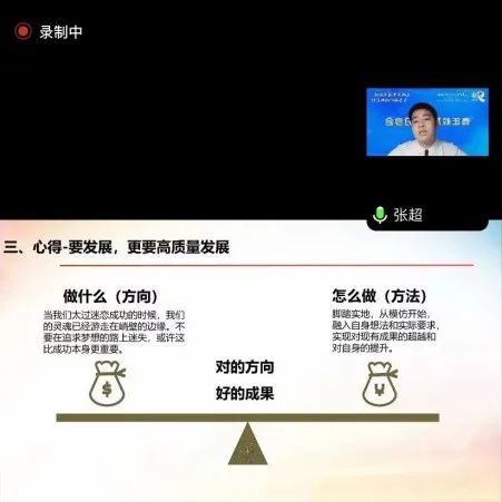 分享了自己大学生活中科研经历、兴趣爱好以及学生组织经历,鼓励同学们要明晰目标、找准方向、融入团队,和身边志同道合的小伙伴们不断实现自我突破与蜕变。