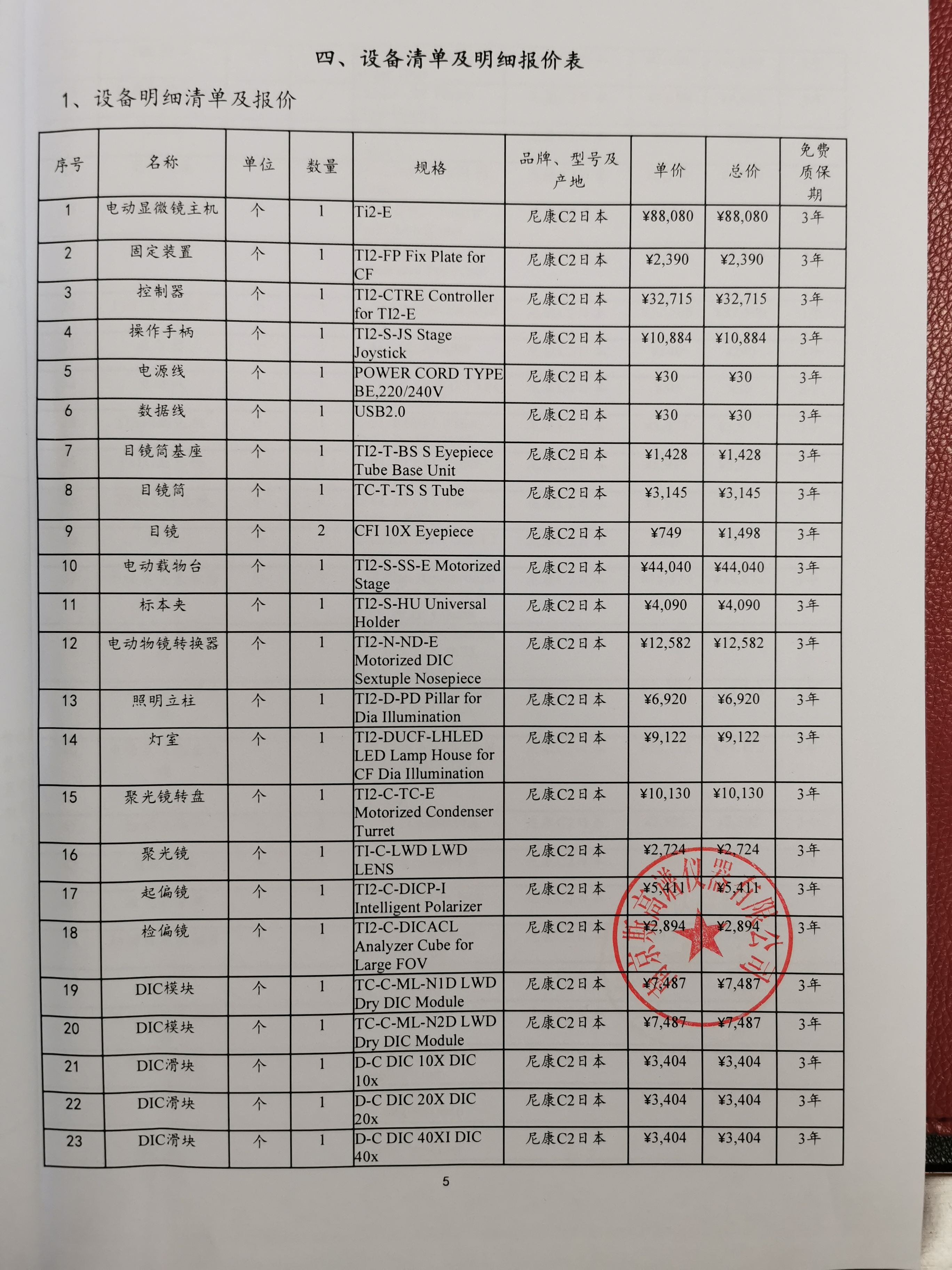 一、项目编号:ZJZCFS-(2021)公字第0413号(江科大校内编号wz-2021087) 二、项目名称:激光扫描共聚焦显微镜(进口) 三、中标信息 供应商名称:南京斯高谱仪器有限公司 供应商地址:南京市建邺区水西门大街272号601室 中标金额:人民币壹佰叁拾玖万元整(¥1390000.00)) 四、主要标的信息:见附件产品报价清单 五、评审专家名单:吴萍谭安江陈通凡狄庆高慎男戴佑敏唐国钢 六、公告期限 自本公告发布之日起1个工作日。 七、其他补充事宜 各有关当事人对采购结果有异议的,可以在应知其权益受到侵害之日起七个工作日内,以书面形式向 招标办提出质疑,逾期将不再受理。 八、凡对本次公告内容提出询问,请按以下方式联系: 1.采购人信息 名 称: 地址:江苏省镇江市梦溪路2号 联系方式:0511-84432622、84400336 2.项目联系方式 项目联系人:招标办赵老师 电 话:0511-84432622、84400336 传真:0511-84432622 1、采购文件 2、产品报价清单 |