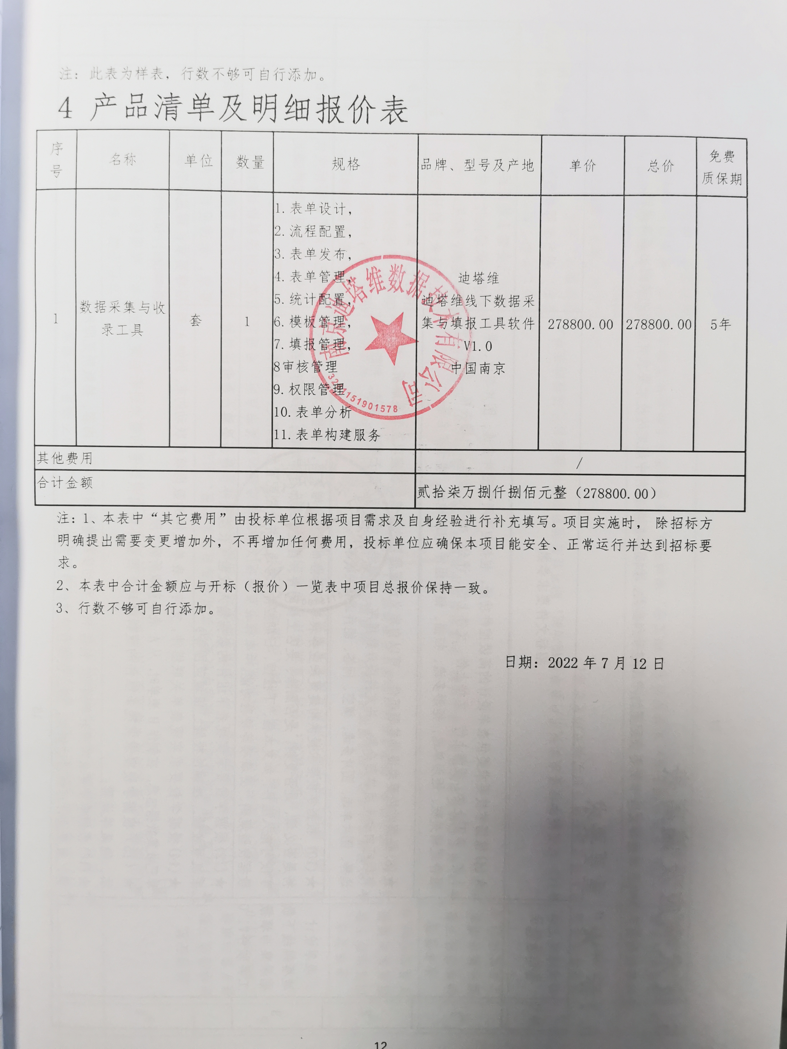 一、项目编号:wz-2022034 二、项目名称:数据采集与收录工具 三、中标信息 供应商名称:南京迪塔维数据技术有限公司 供应商地址:南京市雨花台区软件大道180号02栋6层602室 中标金额:人民币贰拾柒万捌仟捌佰元整(¥278800.00) 四、主要标的信息:见附件产品报价清单 五、评审专家名单:李涛仲伟波岳喜马张笑非崔建芳 六、公告期限 自本公告发布之日起1个工作日。 七、其他补充事宜 各有关当事人对采购结果有异议的,可以在应知其权益受到侵害之日起七个工作日内,以书面形式向 招标办提出质疑,逾期将不再受理。 八、凡对本次公告内容提出询问,请按以下方式联系: 1.采购人信息 名 称: 地址:江苏省镇江市梦溪路2号 联系方式:0511-84432622、84400336 2.项目联系方式 项目联系人:招标办赵老师 电 话:0511-84432622、84400336 传真:0511-84432622 九、附件 1、采购文件 2、产品报价清单