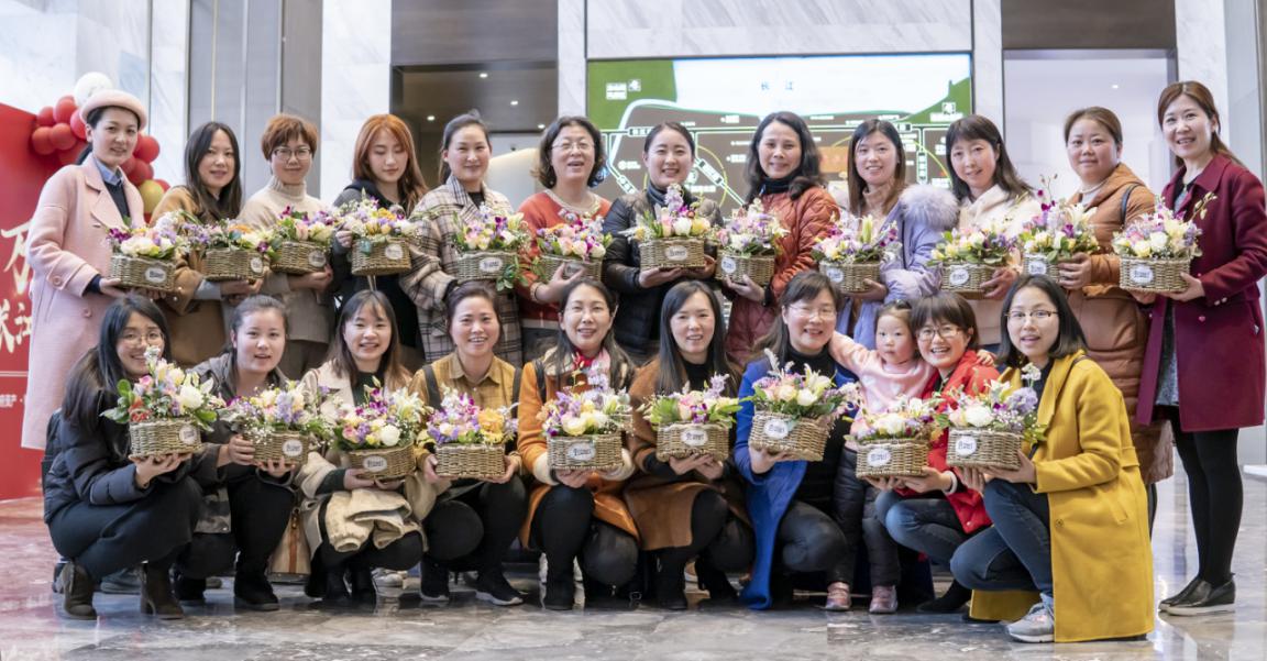 粉色的玫瑰、白色的满天星、黄色的百合、紫色的洋兰……五彩缤纷的花,摆满了长条桌,洋溢着春的气息。这是3月16日下午,资产经营公司工会组织20多位女职工相约富力·长江府售楼处,学习插花技艺。