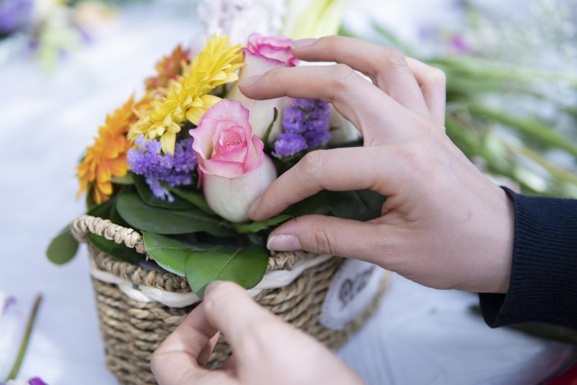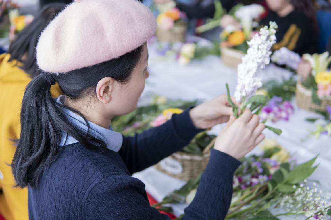 一花一世界,每一束花都是生命,是春天的使者。插花师范老师,为大家详细讲解了花的品种、如何选材、艺术造型以及基本技法,并在现场做了生动的演示。大家以高涨的热情投入插花创作。一支支鲜花,经过构思、造型、设色、修剪、整枝、折弯,置入了花篮,变成了一件件精美的花艺作品。大家纷纷举起手机,拍下自己的创作成果,留住了最美的一刻。