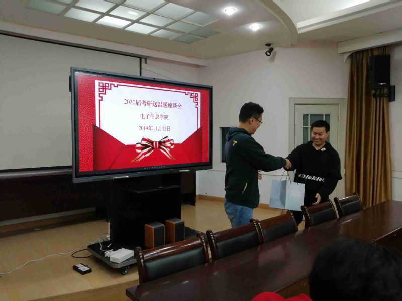 2019年11月12日晚,电子信息学院成功召开了以“研路漫漫,有我相伴”为主题的考研送温暖座谈会,参会人员有学院党委副书记何长涛、辅导员代表庄媛以及16级考研学子代表。