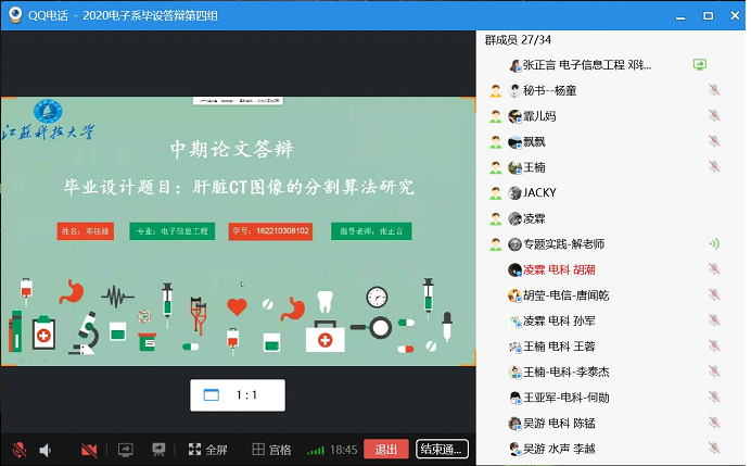 为了确保网络线上答辩顺利进行,各组答辩前进行了充分的准备:提前建立工作群,多次开展线上讨论,就答辩时间、顺序等进行了详细的协调与安排。