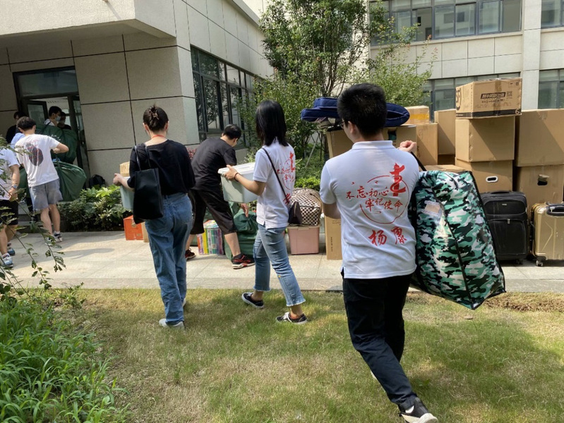 6月30日, 电子信息学院自动化系研究生第二党支部以新校区搬迁为契机,开展了主题为“‘研’炎夏日,助梦学子从‘新’启航”的党日活动。9名党员同志和3名入党积极分子组成志愿者团队,共同协助电子信息学院本科生搬迁入驻新校园,将党员的先锋模范作用发挥到实处,用实践诠释为人民服务。