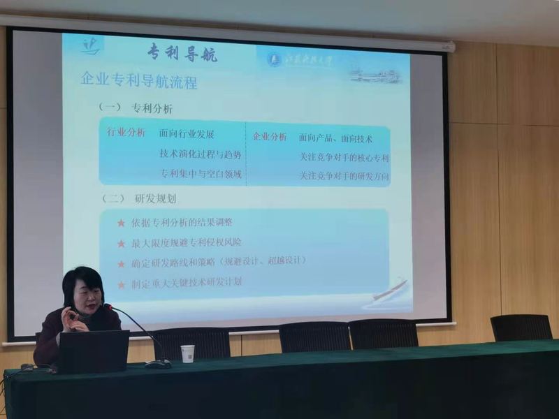吴洁教授围绕知识产权内涵、企业专利现状、专利导航目的与流程进行了介绍,并以沪东造船厂的LNG船、智能家电等为案例,重点讲解了知识产权布局、专利转化最佳途径、高价值专利培育与报奖等工作,并就青年教师在专利申请、培育、报奖等方面存在的疑惑进行了深入剖析与交流。